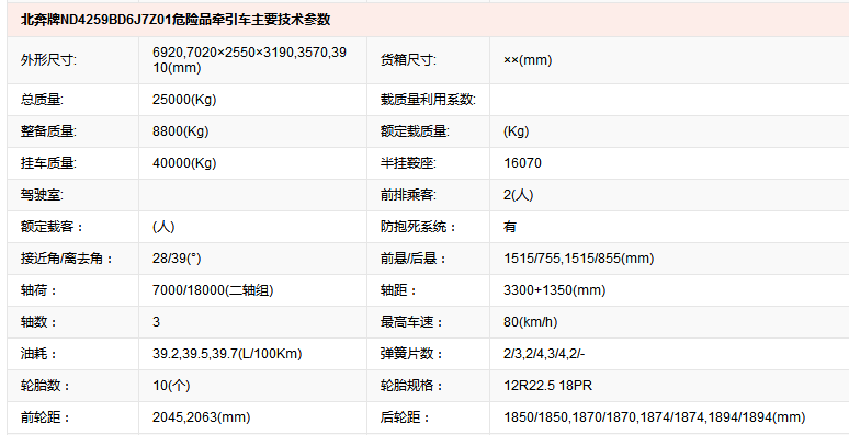 北奔牌ND4259BD6J7Z01危險品牽引車beiben dangerous goods tractor